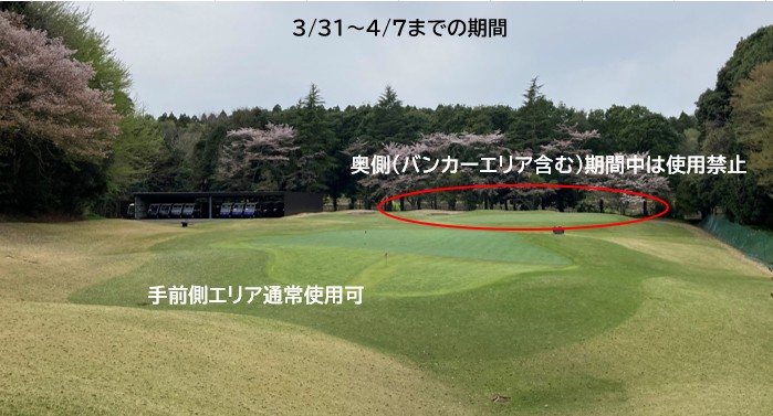 アプローチ練習場(奥バンカー側)グリーンの播種作業の為、